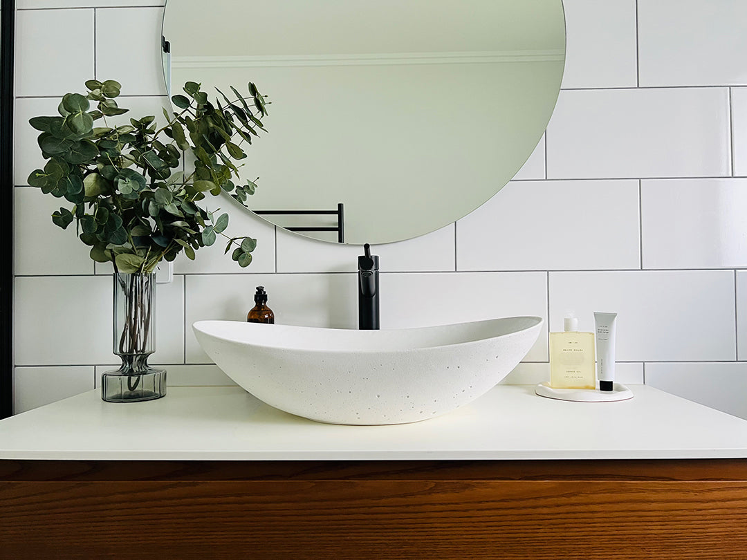 Hand-crafted in New Zealand using glass fibre reinforced concrete (GFRC), – resulting in concrete basins and sinks that are lighter, stronger, and more durable than traditional concrete and enables us to create a variety of elegant shapes and colours to complement your décor.